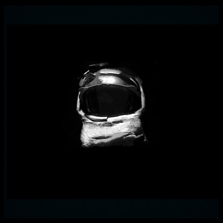 The slightly distorted space helmet in the darkness was chosen for Monkey Christ. The term Monkey Christ was given to the questionable restoration of the Elías García Martínez depiction of the face of Christ, when a parishioner, Cecilia Giménez, tried to restore the fading, flaking painting. The music on this album, in particular the title track, was a little more avant garde and dealt with death. The Monkey Christ here was more influenced by the darker moments of 2001: A Space Odyssey, in this case the disembodied space helmet adrift or perhaps observing from space just like the obelisk in the movie, it is meant to be dark and foreboding, an external force on the event horizon of oblivion. No artist name or title, its stark simple image meant to reflect the darkness of the music.