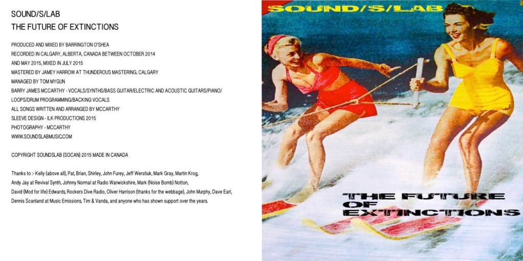 Sound/s/Lab was the cumbersome name given to a project that was going to focus on an electronic sound, using various live synths, plug-ins, and DAW based synths. Many of the tracks featured guitar and bass too, it seemed like a good idea but, many North Americans who had the imagination of a tree stump called it retro, and after 3 albums, it was no more.